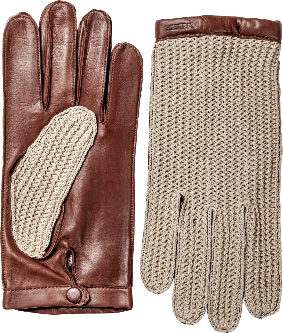 A classic glove in supple lamb nappa leather with a crocheted cotton backhand. A tasteful dress glove that lifts the rest of your outfit in spring, summer and early autumn. The fit is close to the hand with half piqué seams around the inside fingers. A short slit with a press stud at the inside wrist makes the glove easier to put on and take off.