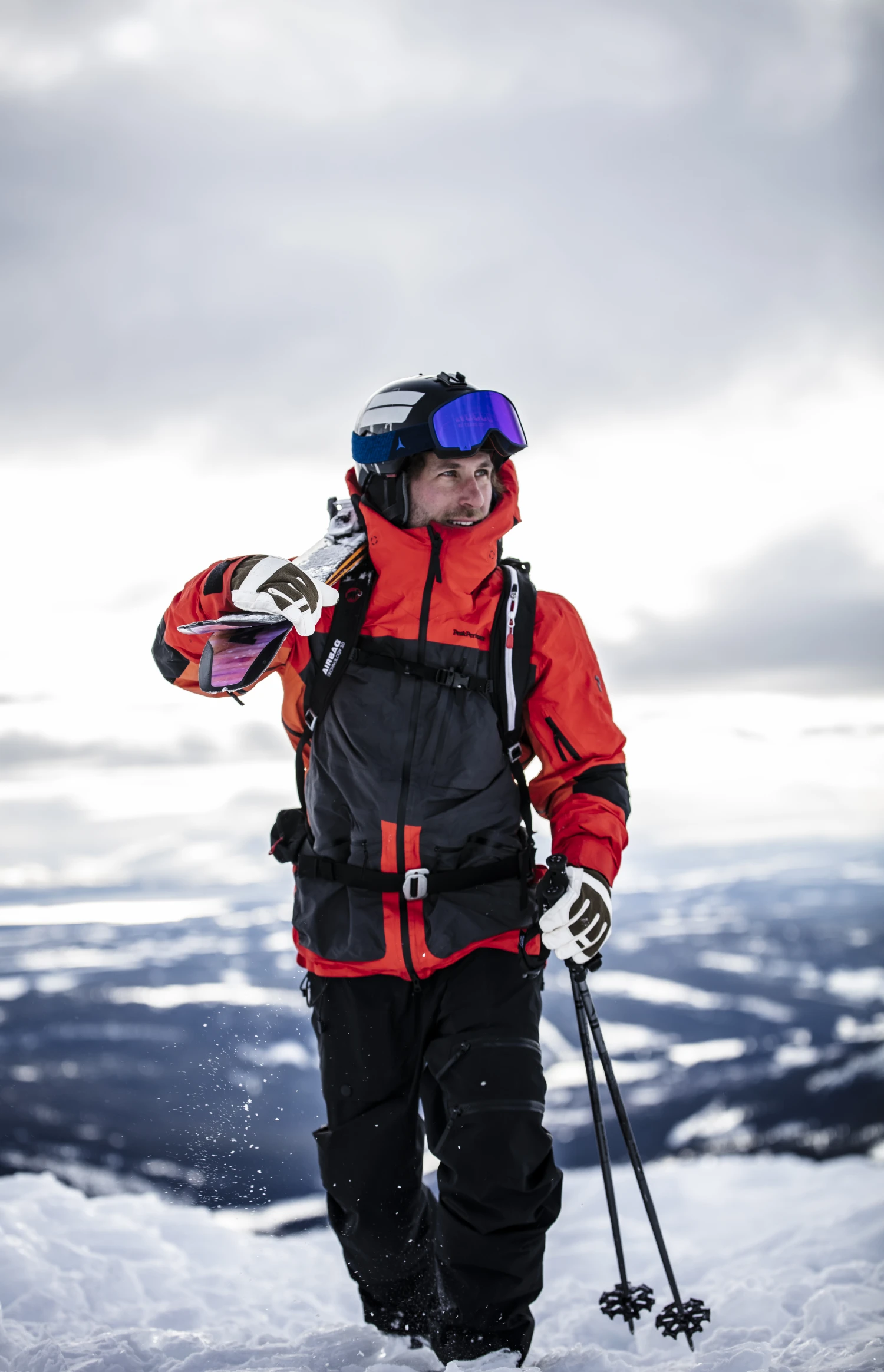 A short, versatile 5-finger ski glove for alpine skiing and snowboarding, on and off-piste. Just as comfortable early in the season as spring slush in April/May. Flexible polyester fabric on backhand protects from the elements, while chrome-free goatskin leather on the palm provides good grip.